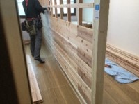 間仕切り壁は床・天井間に下地をし、杉板(12mm合いじゃくり加工)を両面から張りました。